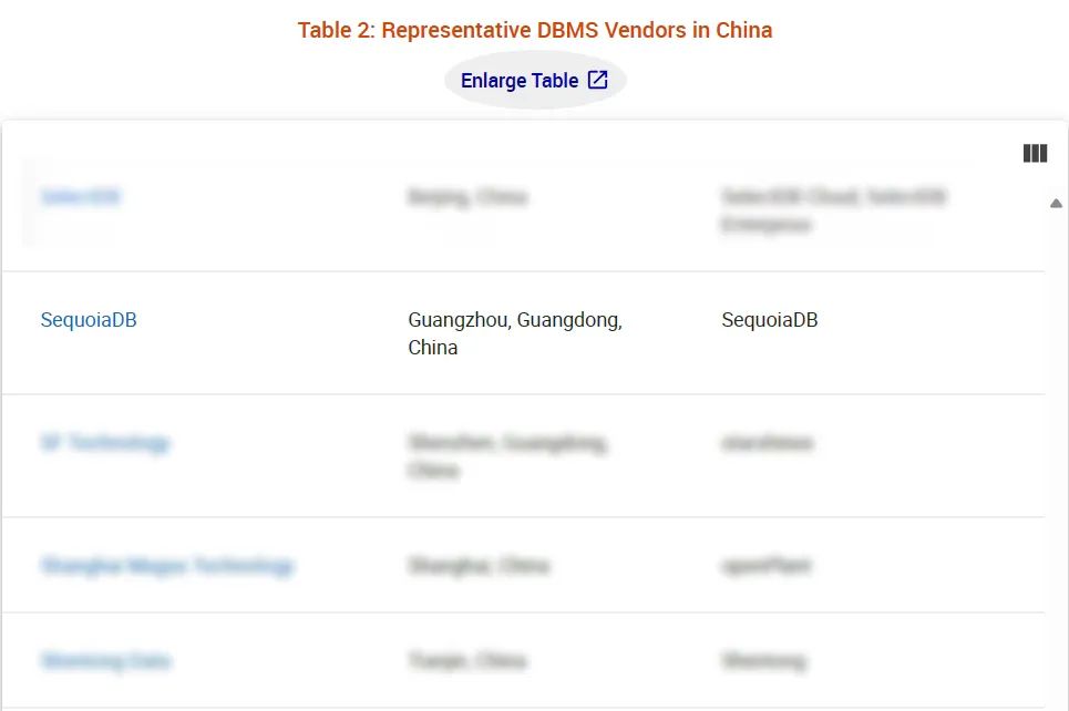 近日,Gartner公布了《Market Guide for DBMS, China》报告,巨杉数据库凭借卓越的分布式文档型数据库技术与创新实力,再次脱颖而出,连续第二年被列为中国数据库管理系统的代表厂商。本次入选充分肯定了巨杉数据库的技术实力和卓越成就,也标志着巨杉数据库在国内分布式数据库行业的领先地位。Gartner报告指出,中国DBMS市场在2022年已达到63.24亿美元,同比增长11.4%。值得关注的是,2022年中国本土DBMS供应商的市场份额首次超过了50%,达到了50.1%。这也表明,DBMS作为所有数据管理的基础,是实现自我支撑的关键技术领域之一。