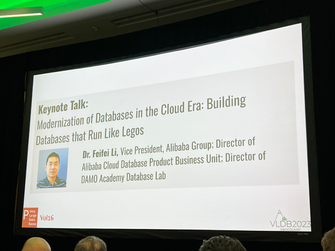 VLDB 2023 现场,阿里云李飞飞作特邀主旨演讲阿里云数据库产品事业部负责人李飞飞在大会现场发表特邀主旨演讲《Modernization of Databases in the Cloud Era: Building Databases that Run Like Legos》,他表示 ,云基础设施的完善和AI技术的飞速发展,为数据库架构更新带来了新机遇。“在云时代,如何让用户像堆叠乐高积木一样更简易、更高效地使用数据库,是新一代云原生数据库所努力的方向。以阿里云瑶池数据库的最佳实践为例,PolarDB通过存储-内存-计算三层解耦实现极致Serverless能力,并支持客户以乐高积木的形式按需增加行级多主多写、HTAP、密态计算等多项核心能力。与此同时,AI技术的发展为云原生数据库注入了全新的智能化潜力,可为数据库提供更高的灵活性、可靠性和自适应能力,从而更好满足用户多样化的新需求。”