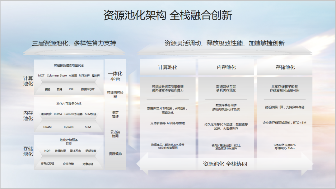 资源池化是openGauss 5.0.0 推出的重点特性,是openGauss基于内存池化和共享存储实现的数据库集群。数据在集群的计算节点内存、共享存储中实现共享。应用可以任意节点接入,集群可以保证提供实时一致性的数据。集群也保证了任何节点出现故障,数据库将继续在正常的计算节点上运行,以此消除数据库单点故障问题,为客户提供优秀的数据库可用性。