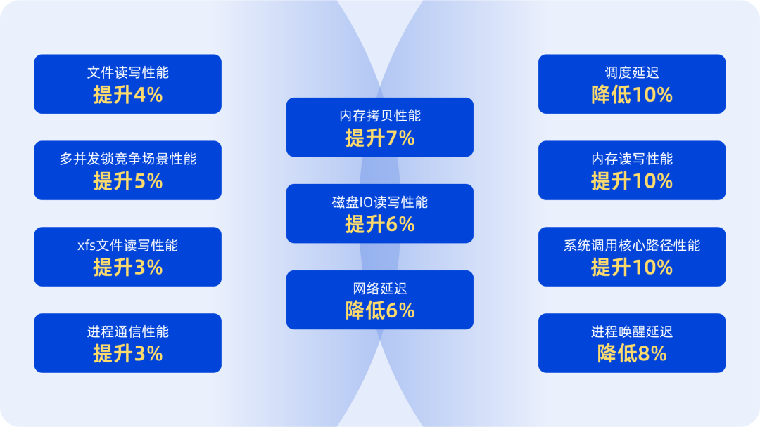 多种自研性能优化成果:文件读写性能提升4%、调度延迟减少10%、多并发锁竞争场景性能提升5%……
