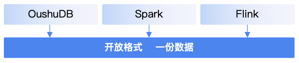 为了实现用更丰富的数据源训练 AI 模型,我们以极高的代价将数仓的数据导出后再并行处理;为了实现实时数据处理,我们不惜选择冗长的数据处理链路,造成多份数据和多个计算引擎烟囱林立。这些痛点都将我们引向对一个问题的思考:我们能不能只用一份数据,精简计算引擎?当下,存储和计算的数据无非是结构化、非结构化和流式数据。破局的第一步,就是在数据的存储方面采用开放格式的一份数据,如 Parquet、ORC、Hudi 等。各个计算引擎都使用开放的数据格式(如 ORC 或 Parquet 等),数据以开放文件格式被写入数据平台,之后就能被多个引擎多次直接读取和使用。有了存储的开放性,在计算引擎方面,我们就可以尽量优化和减少计算引擎的数量,并针对结构化数据、非结构化数据和流式数据,选用各具优势的计算引擎:● 针对非结构化数据和机器学习,可以采用 Spark;● 针对结构化数据,需要兼容开放数据格式,兼顾实时查询、离线分析、高并发和高可用的分析引擎,比如偶数的 OushuDB。至此,开放格式,一份数据,多个引擎的架构初步形成,这样的“一数多擎”架构形成了可以破局当前企业数据困境的方案——实时湖仓(Realtime Lakehouse)。“一数多擎”是我们在多个行业的湖仓一体项目落地中不断迭代的最佳实践。企业在选择多个引擎时一定需要基于“化繁为简”和“扬长避短”原则,比如 OushuDB 可以完全实现Hive、Presto、ClickHouse、HBase 等引擎的功能,引入 OushuDB 后就不需要再依赖这些引擎,这样可以极大简化系统开发和运维的复杂度。Flink 擅长流处理,就使用 Flink 做流处理,而不是使用 Flink 来做 SQL 查询,Spark 擅长做机器学习,就使用 Spark 做机器学习,而不是使用 Spark 来做流处理和 SQL 查询。Hive 查询慢,就不必再保留 Hive,可以使用 OushuDB 取代。
