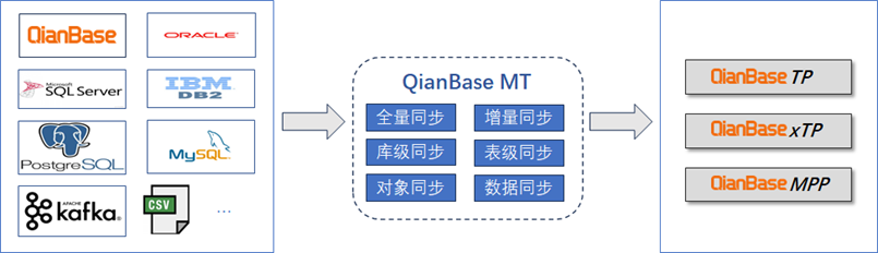 QianBase MT(Migration Tool)是易鲸捷自主研发的一款数据同步工具,支持将主流的数据库以全量或增量的方式迁移到QianBase数据库系列(QianBase TP/MPP/xTP)产品中。相比于业内主流开源的数据集成工具如Kettle、DataX等,其具有多方面的优势,如传输性能高、支持多种异构数据源、可视化运维监控等特点。