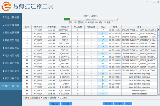 之后可以根据步骤提示,依次配置源端与目标连接、选择迁移对象、配置迁移参数,完成后便可以进行正式的迁移过程。如果迁移后发现有报错,可以通过排序过滤出异常的对象,修复问题后重新迁移。