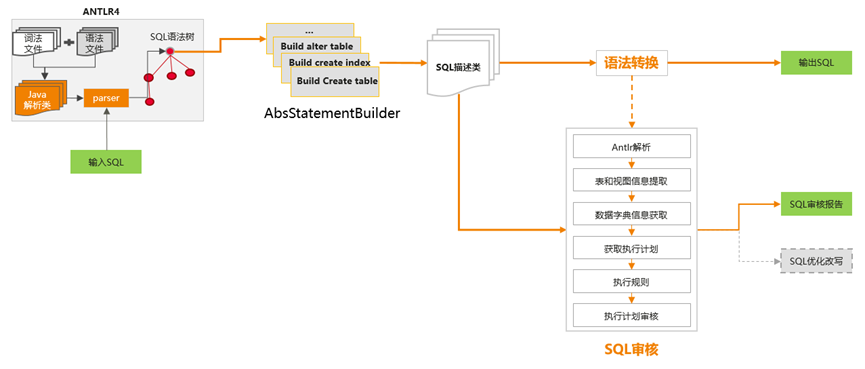 我们SQL审核的输入可以有多种类型,可以是代码仓,也可以是一个SQL文件,还可以是通过流量录制获取的动态SQL等等,可以审核直接获取到的原生SQL,也可以审核通过UGO转换后的SQL。