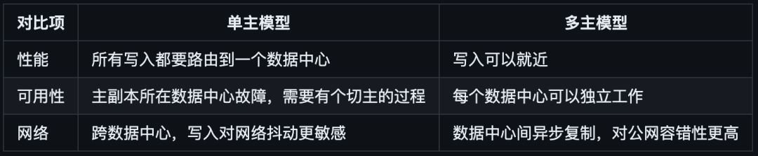 单个数据中心,多主模型意义不大:复杂度超过了收益。总体而言,由于一致性等问题,多主模型应用场景较少,但有一些场景,很适合多主: