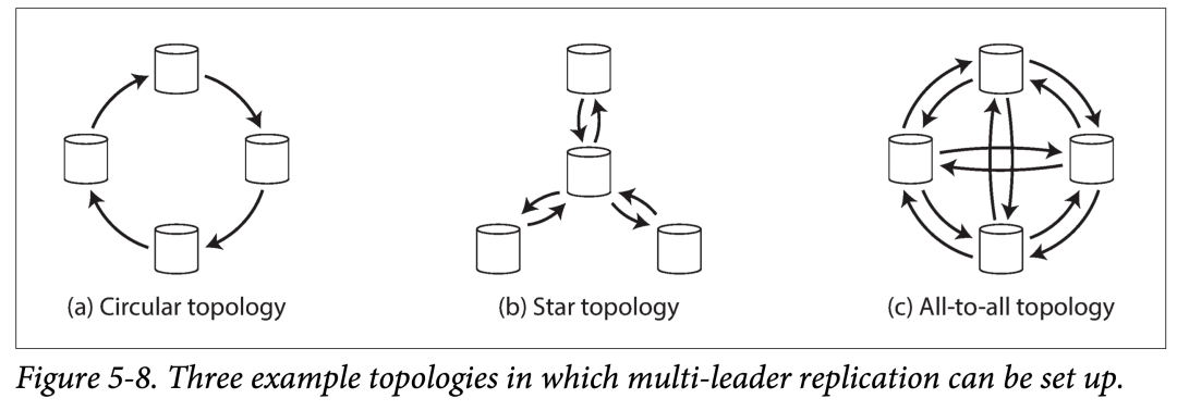 复制拓扑(replication topology)描述了数据写入从一个节点到另一个节点的传播路径。