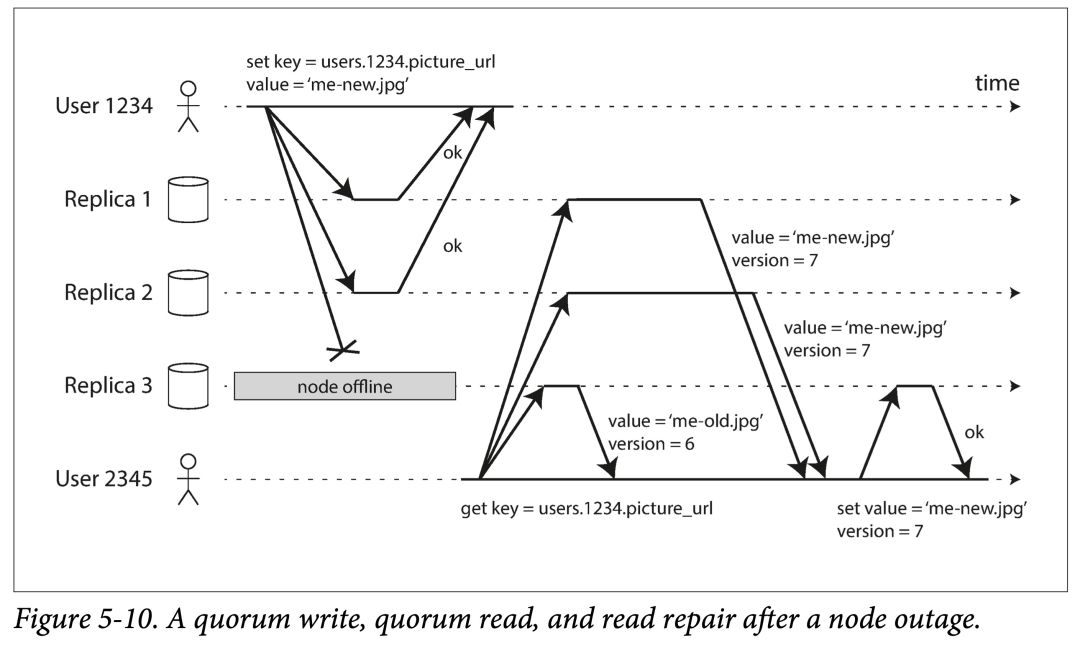 由于写入时,简单的忽略了宕机副本;在读取时,就要多做些事情了:同时读取多个副本,选取最新版本的值。