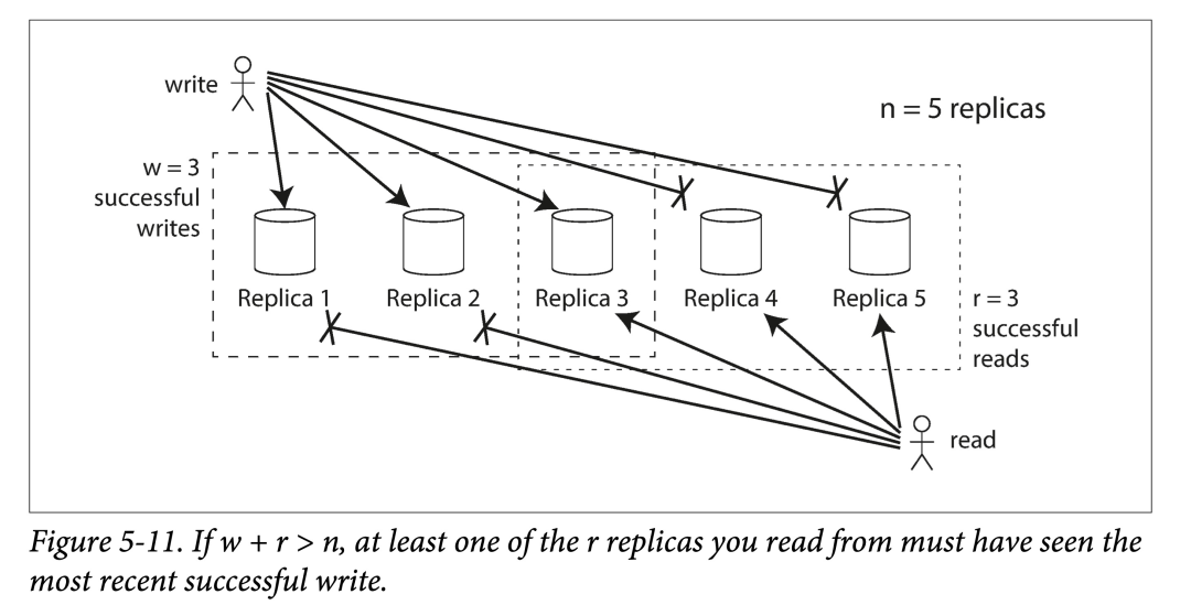 由于 w + r > n 时,总会至少有一个节点(读写子集至少有一个节点的交集)保存了最新的数据,因此总是期望能读到最新的。