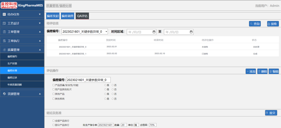 作业过程中的异常反馈:产品通过完整记录作业过程中的请验和偏差,为CSV验证提供有力证据,实现偏差处理完成后,同步生成偏差记录的完整反馈机制,提高工作效率和准确性,确保CSV验证顺利进行。