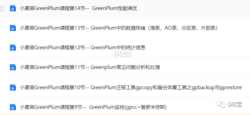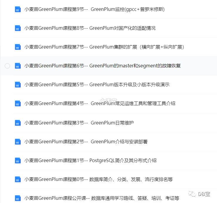 1小麦苗GreenPlum课程公开课--数据库通用学习路线、答疑、培训、考证等:https://docs.qq.com/doc/p/b65bcd7647a9974a94b97fb06d04a089c25a7f0c
