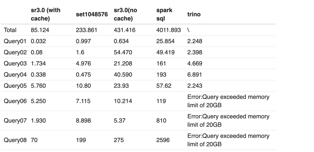 测试结果显示,即使关闭了 Cache,相比 Spark SQL 等最高也有近百倍的性能提升,让我们在享受存算分离便利的同时还能拥有之前未曾体验的极速性能。
