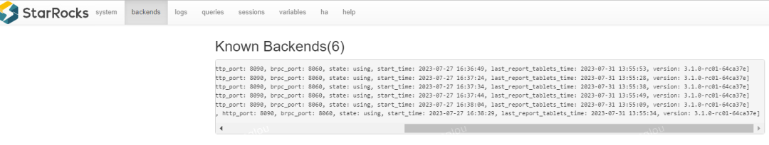 同时,考虑到我们一直采用存算分离架构来处理大数据,我们也希望 StarRocks 能具备存算分离架构以节约成本并减轻运维负担。调研之时,我们也恰巧赶上社区推出了 3.0 版本,我们毫不犹豫第一时间进行了测试和体验,并体会到其性能的优越(详细的测试报告请见:https://forum.mirrorship.cn/t/topic/7075)。测评后,我们立刻上线了 StarRocks 3.0 存算分离版本,随后立即升级使用 3.1.0 版本,并运行在存算分离模式。整个集群由 3 个前端节点(FE)和 8 个后端节点(BE)组成,其中 FE 为 3 台 32G 的 ECS 组成高可用,而 BE 部分则采用了32C 128G 2T 磁盘的 ECS。所有业务数据都存储在 OSS 中。