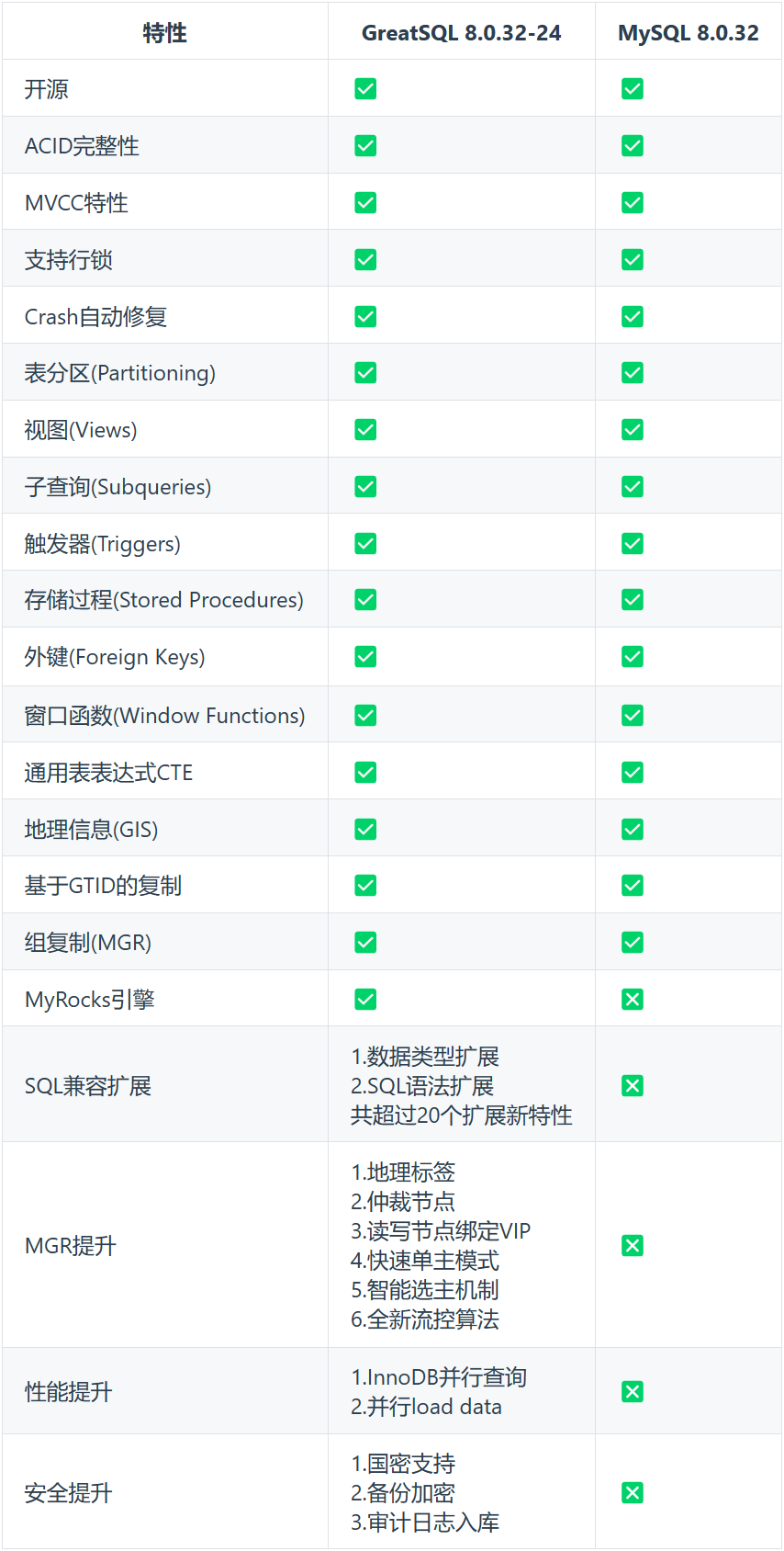 ▲ GreatSQL & MySQL 功能对比