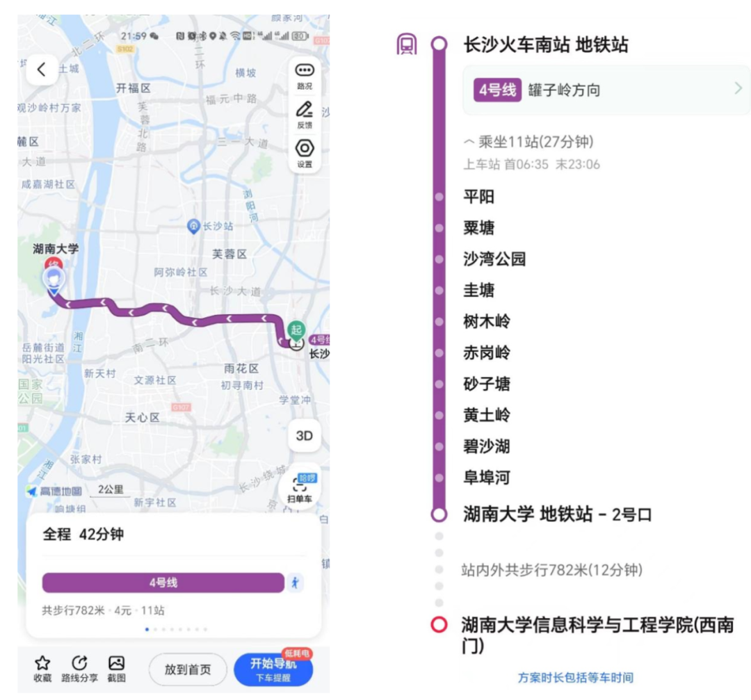 乘车方案一:地铁4号线(约42分钟,推荐)