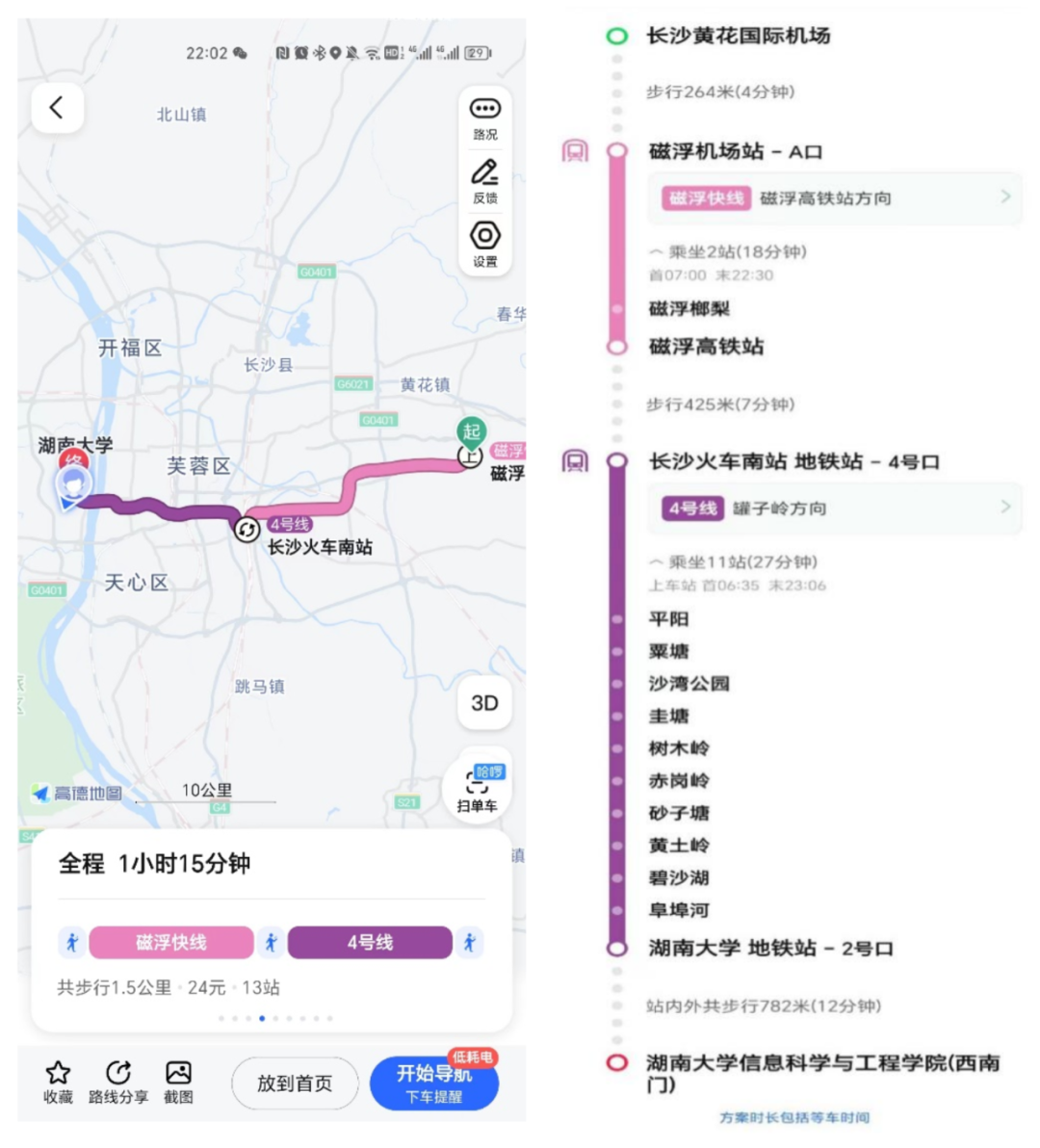 乘车方案一:磁浮快线转4号线(约1小时15分钟)
