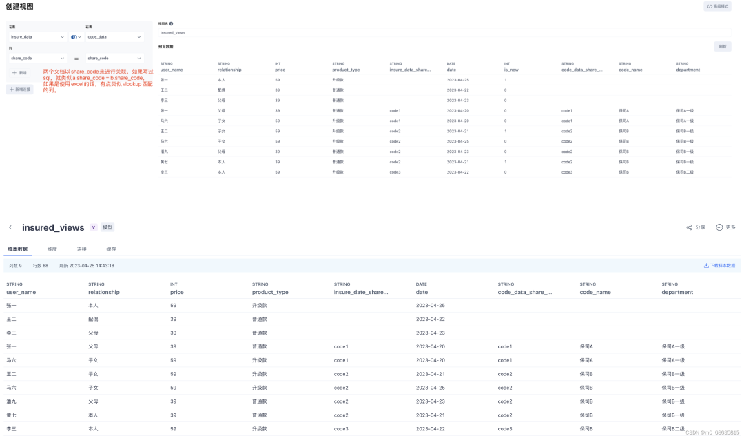 2.3 业务的需要是有 2 张表,想要查看某一个保司部门的业绩销量,就需要将投保明细表和投保保司表,关联形成一个新的“表”(视图)呢?
