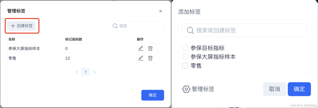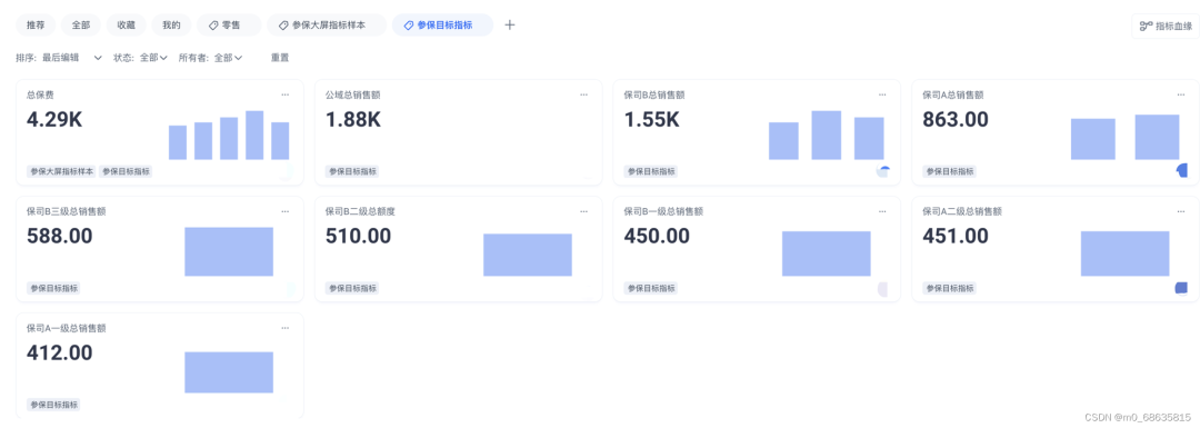 给指标添加多个标签,也就意味着一个指标可以在多个目标、多个仪表盘中被重复使用(这个很重要,类似积木,指标就像一颗颗最小可用品的基础单元,进行不同的组合,可以达到不同的模型)。
