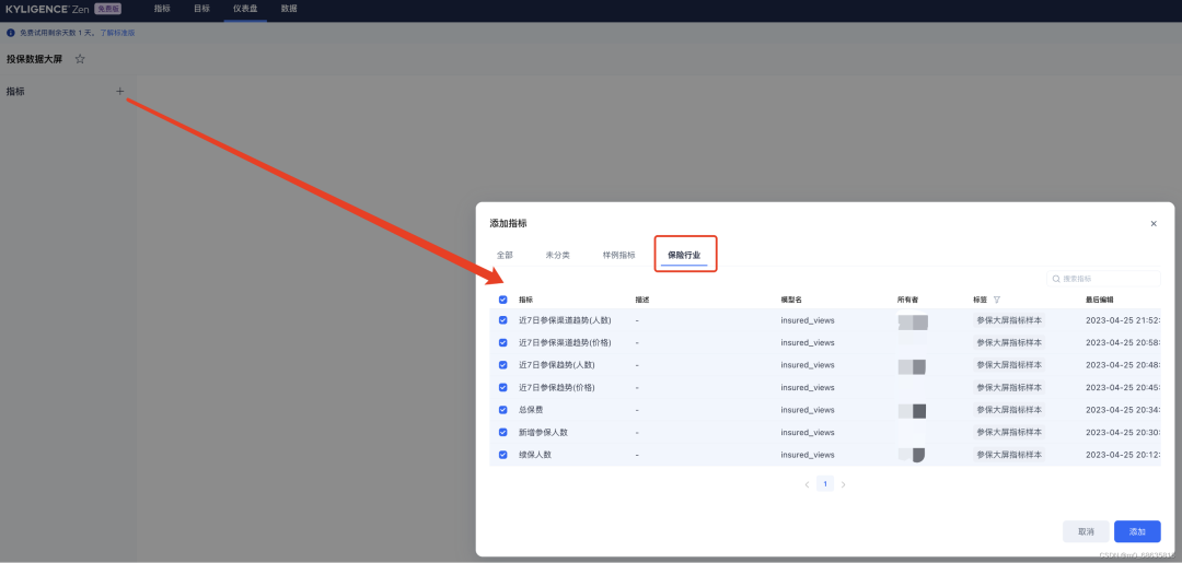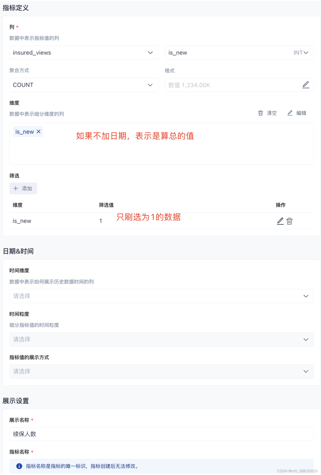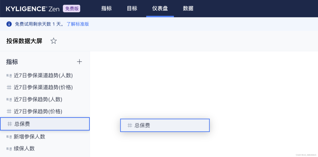 3. 快速新建一个指标,统计每日总投保费