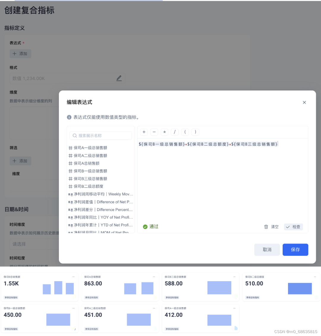 1.4 同理创建复合指标非保司的总销售额(公域总销售额),即总销售额 – 保司 A 总销售额 – 保司 B 总销售额