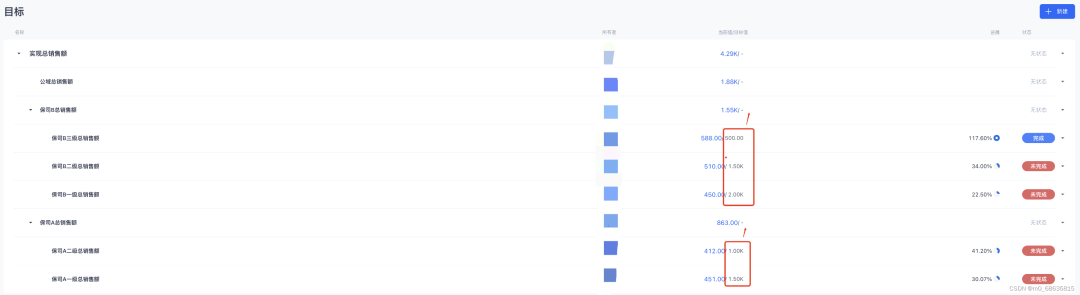 这里建议最好下级单位设定了目标值,上级单位可以继承。