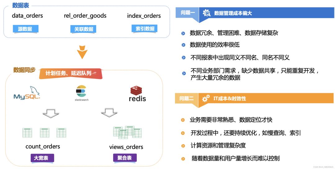 公司在 0-1 的过程中,随着业务量的迅速增长,在多维分析的需求上越来越吃力。主要表现为: