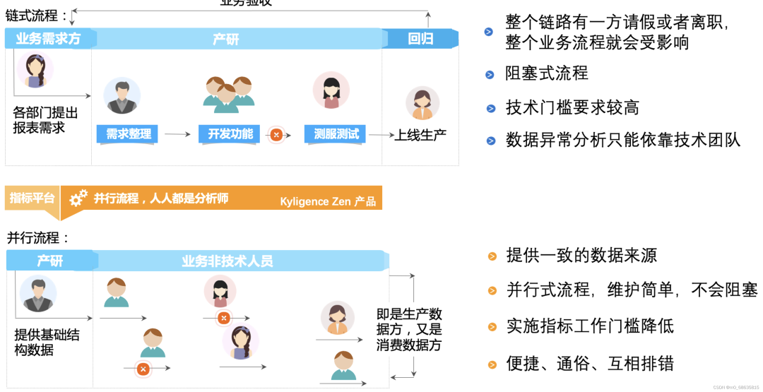 可以让更多的非技术人员既可以提供数据服务,也可以消费数据服务,都能通过简单的指标来进行数据分析、做出决策,甚至是进行业务方面的创新。长此以往,企业就能自下而上地逐步建立起来可信的数据指标体系和数据文化。