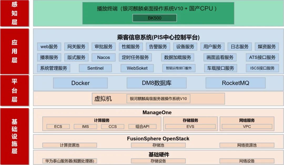 平台采用银河麒麟高级服务器操作系统V10、DM8数据库以及RocketMQ消息中间件,终端采用银河麒麟桌面操作系统V10,实现了PIS的全国产化,具备自主创新、安全稳定等特点。