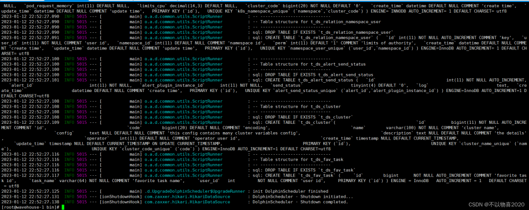 mysql -uroot -pmysql> CREATE DATABASE dolphinscheduler DEFAULT CHARACTER SET utf8 DEFAULT COLLATE utf8_general_ci;# 修改 {user} 和 {password} 为你希望的用户名和密码mysql> GRANT ALL PRIVILEGES ON dolphinscheduler.* TO '{user}'@'%' IDENTIFIED BY '{password}';mysql> GRANT ALL PRIVILEGES ON dolphinscheduler.* TO '{user}'@'localhost' IDENTIFIED BY '{password}';mysql> flush privileges;