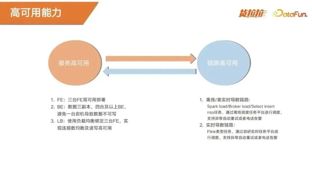 服务高可用,主要依赖Doris自身的能力,FE用三台部署高可用架构。BE数据用三台副本,四台及以上的节点,避免一台宕机导致服务数据不可写。另外,引入负载均衡绑定后端,实现连接数的均衡,以及读写高可用。分为离线/准实时链路和实时导数链路。离线/准实时链路,支持异常重试和电话告警,数据支持幂等操作。实时导数链路,和离线一样,通过自研的调度平台进行调度。6. 自动化能力