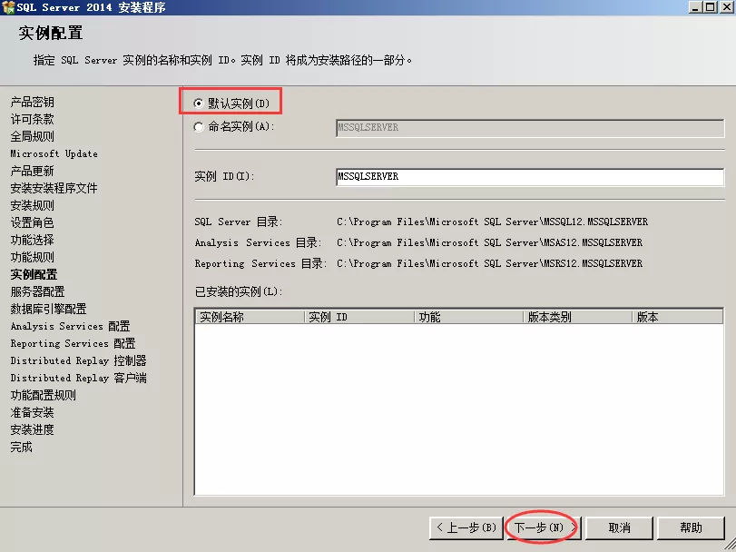 7、选择默认实例(MSSQLSERVER),或自定义实例名称,点击“下一步”;一般情况下默认实例就可以了,除非你电脑上安装了多个数据库,造成了实例的冲突