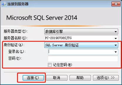 19、身份验证选择“SQL Server身份验证”,用户名sa ,输入密码,点击“连接”登录;