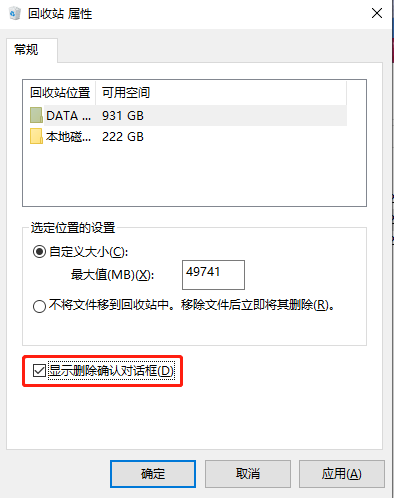 这个是可以设置的功能,右键点击回收站的属性选项,选中"显示删除确认对话框"。再按DEL,就会出现弹窗,点确定才执行,提供了个double check的选择,