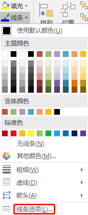 (2)选中线条,右键点击"设置形状格式",或者点击工作区中的"线条",选择"线条选项",