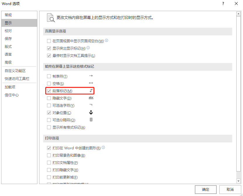 Word中可能默认不显示回车,有时候调整格式的时候,需要让它显示出来更方便调节,可以进入"选项 - 显示",勾选"段落标记",