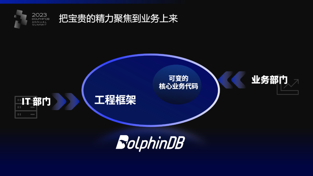 原先业务人员使用 Python 其实也是这个逻辑,因为 Python 简单易学,技术门槛低。但是 Python 的性能不够好,不能满足大数据处理或生产环境的需要。DolphinDB 出色的性能弥补了 Python 的短板,能兼顾到业务方和技术方的需求。