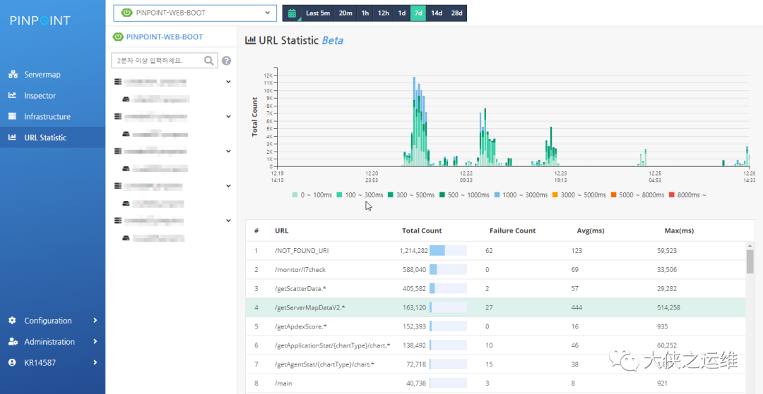 Pinpoint可以可视化展示请求计数和响应模式的变化趋势。这有助于识别潜在的问题,并提供了更详细的信息以进行进一步的分析。