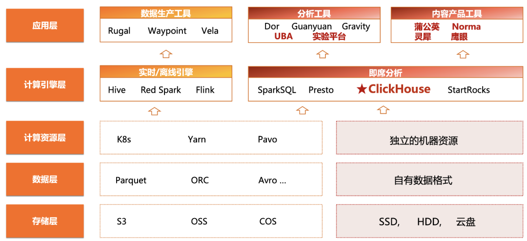 基于上述原因,社区开源版的 ClickHouse 难以满足公司在广告、社区、直播、电商等业务需求方面的大规模应用。解决集群岌岌可危的存储上限和运维等问题,对团队来说迫在眉睫。