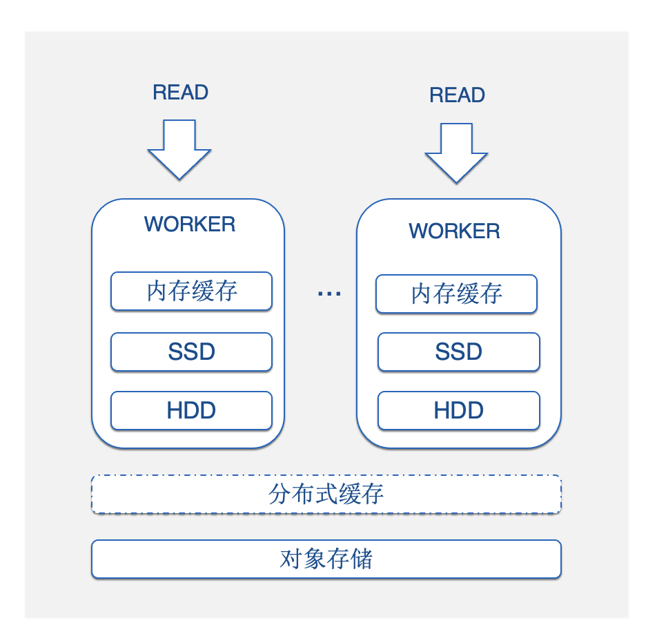 对象存储为我们实现存算分离提供了基础,但同时也带来了查询时必须从云上拉取而导致延迟的问题。尽管通过对象存储的优化手段解决了大部分场景下的拉取问题,但对于部分频繁访问的热数据,反复从云端拉取并不高效。为此我们提出了缓存策略,利用机器的磁盘用作对象存储的缓存盘,为高频查询需求提供高性能保障。