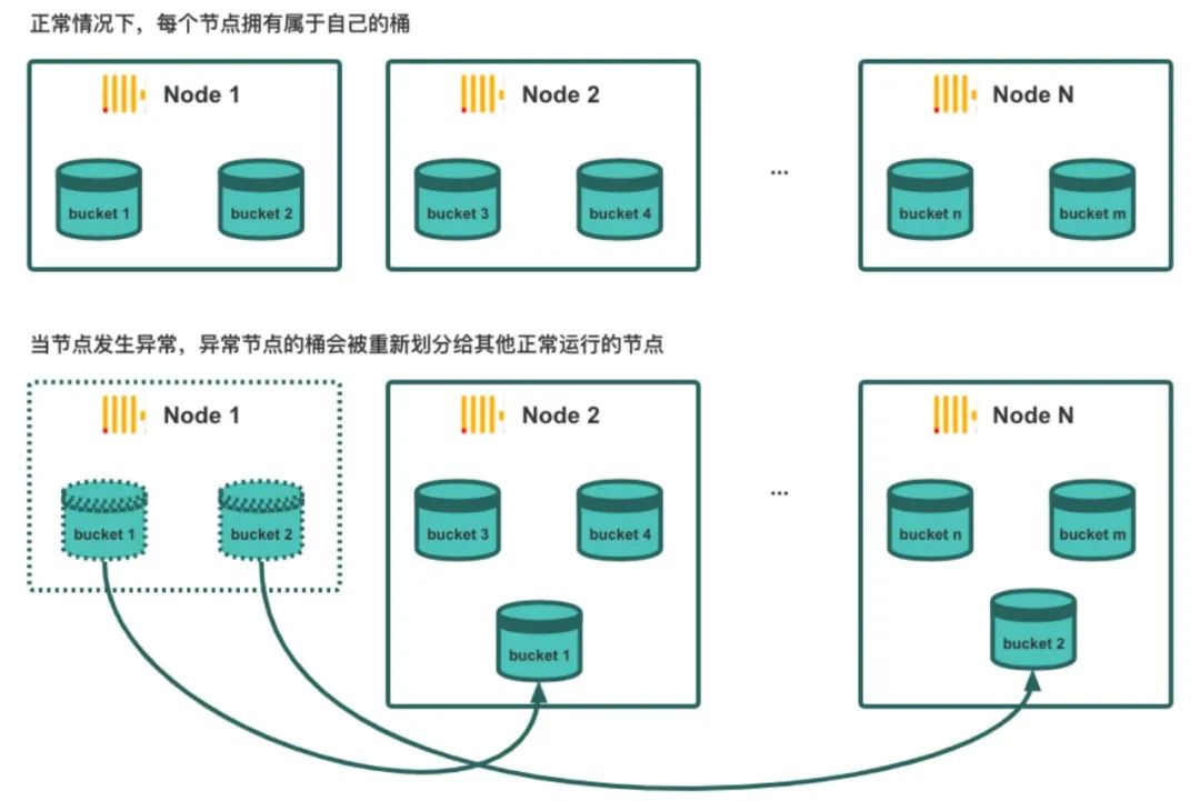 通过将数据按 Bucket 划分,我们在任务调度过程中以 Bucket 为单位,灵活调度 Bucket 和节点之间的映射关系,为弹性扩缩容提供了基础。
