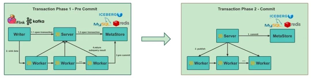 基于统一管理的元数据中心,我们实现了 REDck 的事务机制,对数据摄入进行事务管理,并通过 Metastore 角色统一管理全局的数据可见性,从而实现两阶段事务提交功能。这一改进使得我们能够确保数据写入的一致性和可靠性,避免重复数据的产生。