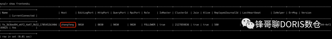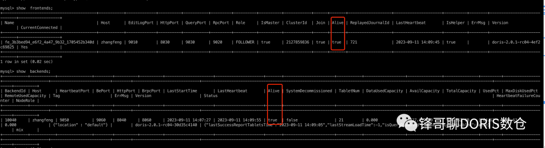 mysql -uroot -P9030 -H127.0.0.1查看 FE 节点
