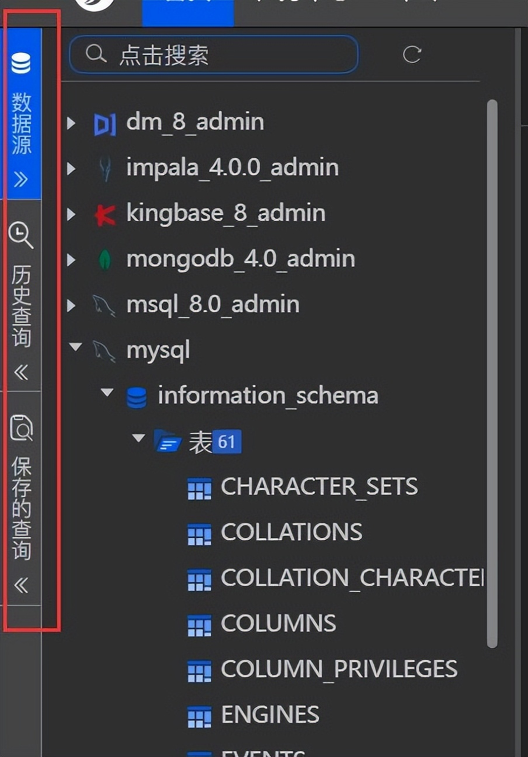 【数据源】为原版本的导航窗口信息,展示当前添加成功的所有数据源信息;