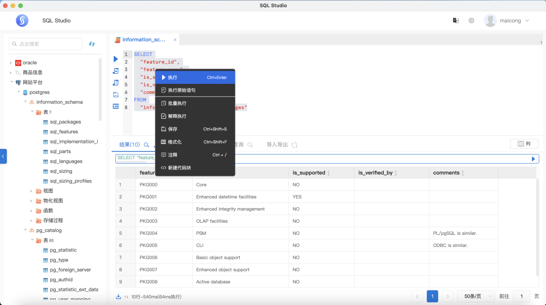 目前,SQL Studio提供Windows、Linux 和 MacOS三种版本的软件包,支持中英文两种语言。