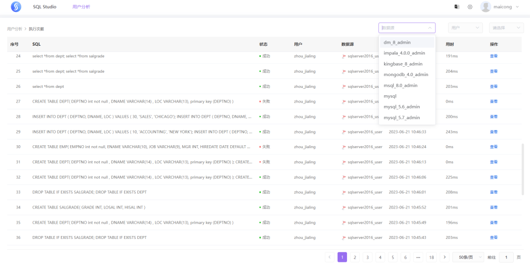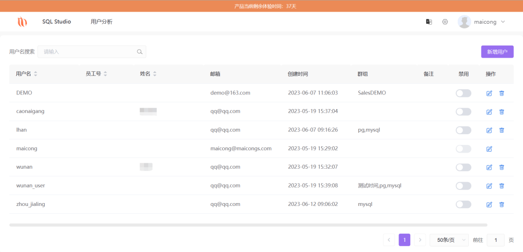 针对团队,SQL Studio采用管理员+普通用户的管理机制,让团队负责人可以统一管控数据源和员工行为。