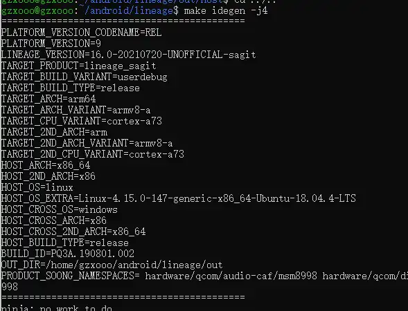 2、lunch AOSP 源码可以用 lunch ,如果是 LineageOS 源码用需要用对应的命令否则会报错。