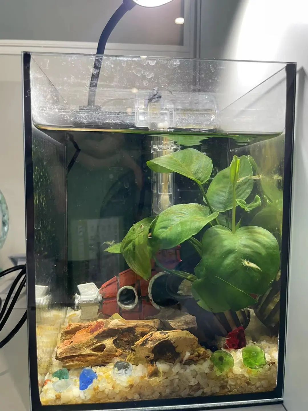 最近在公司搞了一个小的生态缸,我对于生态缸的定位比较简单,养鱼有些麻烦,直接养虾,而且是那种最好养的黑卡虾。