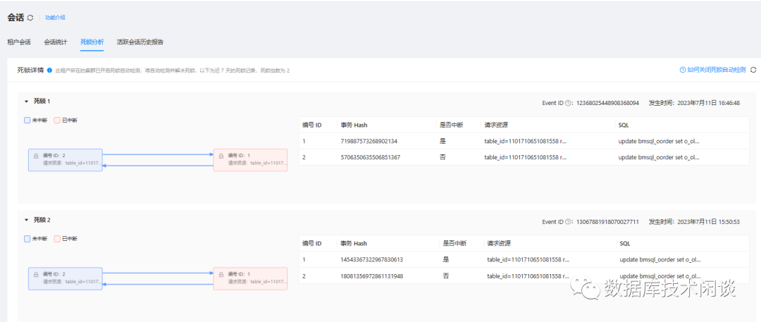 会话 2 报错,发生死锁。