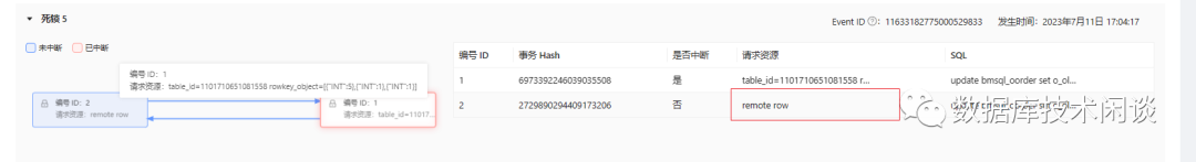 不同之处在于,OCP 指出了其中一个请求的资源是`remote row` ,说明这是一个分布式死锁。