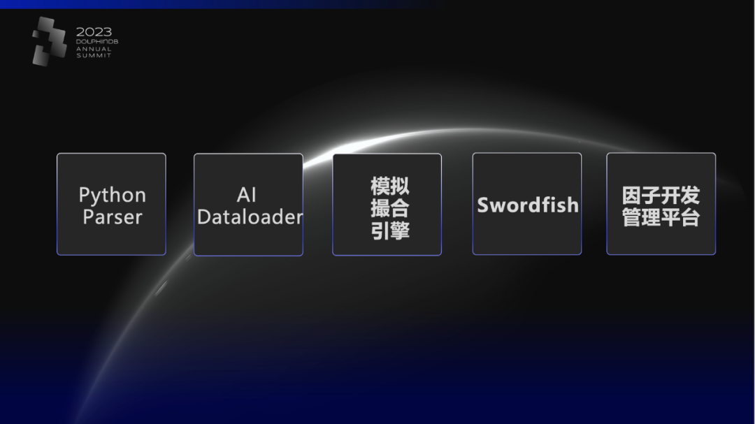 Python Parser:支持 Python 原生语法以及 Python pandas 的所有接口。Python技术栈用户可以用最快捷的方式使用 DolphinDB,享受高性能和分布式计算的能力。 AI Dataloader:将存储于 DolphinDB 中的数据一步到位转换成 pyTorch 需要的tensor格式,减少中间过程;同时支持以流水线作业的方式,增量读取和转换数据。用户可以将更多的精力聚焦在业务优化上。 模拟撮合引擎:基于国内沪深两市的撮合规则设计开发,支持沪深股票、债券、基金的 Level 2 行情撮合,支持沪深两市限价订单,市价订单、撤单等订单类型,让用户通过成交百分比、下单网络延时、冲击成本的配置尽可能的让回测效果贴近实盘真实表现。 Swordfish:用户将 DolphinDB 作为基础组件嵌入到已有的风控或交易平台上,为已有系统的底层架构赋能。 因子开发与管理平台:包含行情数据导入、因子代码及权限管理、因子评价以及发布流程管理、因子计算任务管理和监控、计算流程编排、以及因子库和数据权限的管理。用户不必耗费过多精力在因子开发的管理和运维上,可以更关注因子策略本身。
