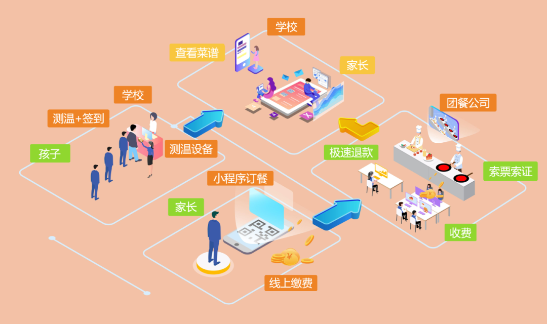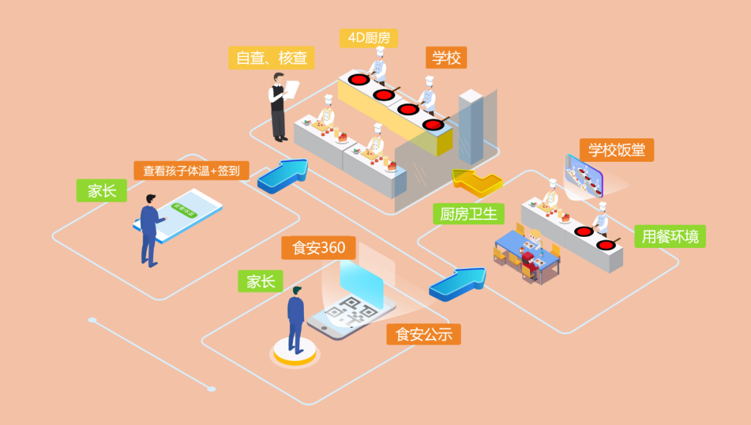 随着数字经济的蓬勃发展,通过智能算法、物联网、大数据分析、云计算、移动互联网等现代数字化技术对餐饮行业食品安全系统进行数字化改造,实时全面地掌握餐饮机构全链条数据和动态信息,利用数字化、信息化手段进行即时高效的食品安全管理,成为未来发展的必经之路。以学校食品安全保障为例,因餐饮机构繁多,信息孤立,加之后厨管理环节多且难以统一规范,缺乏连接餐饮企业、学校、学生家长多方沟通的桥梁,数据透明化和可视化难以实现。